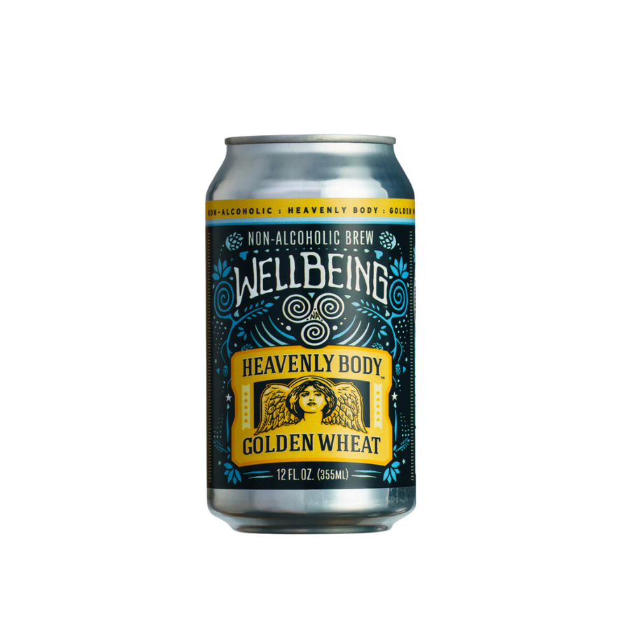 Introducing the Wellbeing Heavenly Body Golden Wheat four-pack! Experience the essence of pure refreshment in every sip with this golden-hued, non-alcoholic wheat beer. Carefully crafted to embody the light and invigorating qualities of a classic wheat beer without alcohol, it offers a smooth and crisp profile.